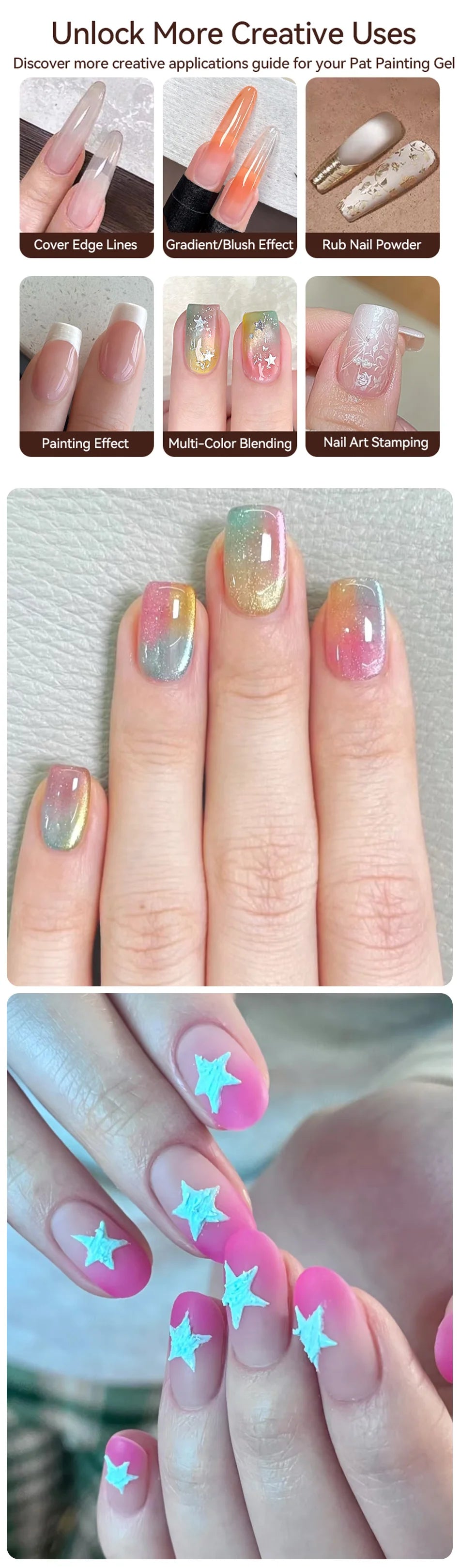 | Application | All Season Nail Art, Gradient Color, Blush Nail Effect, Stamping, Fine Line Patting. |